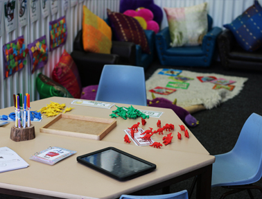 - Creative / Messy spot: provides the opportunity to paint, paste, draw, manipulate play dough, shredded paper, slime, goop, role play and initiate interactions with each other.